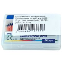 Штифт Медента эндоканальный гуттаперчевый, размер №30, конусность стандартная 04, 60 шт/упаковка, Республика Корея (Meta Biomed Co., Ltd.) 04GUT30 P21