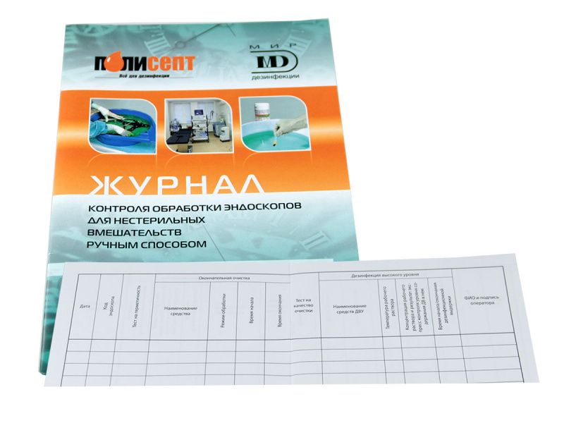 Журнал контроля обработки эндоскопов для нестерильных вмешательств механизированным способом, формат А5, 12 страниц, Россия (ООО "Мир дезинфекции"/ООО "Полисепт")
