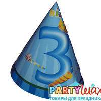 Праздничный колпачок "Мальчику 3 года" - 6 шт.