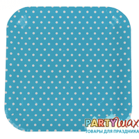 Тарелка квадратная горошек, голубого цвета - 6 шт.