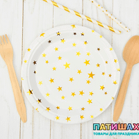 Тарелка бумажная Звёзды цвет золото - для проведения дня рождения. Тарелки входят в состав коллекции Цветная вечеринка товаров для проведения праздников. Упаковка - 6 шт.150 ₽Владивосток — 200 rub -