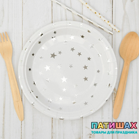 Тарелка бумажная Звёзды цвет серебро - 6 шт