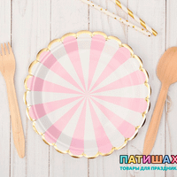 Тарелка бумажная Полоска цвет розовый и белый - 6 шт.