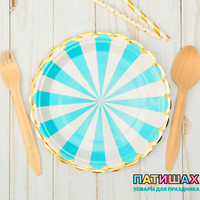 Тарелка бумажная Полоска цвет голубой и белый - 6 шт.
