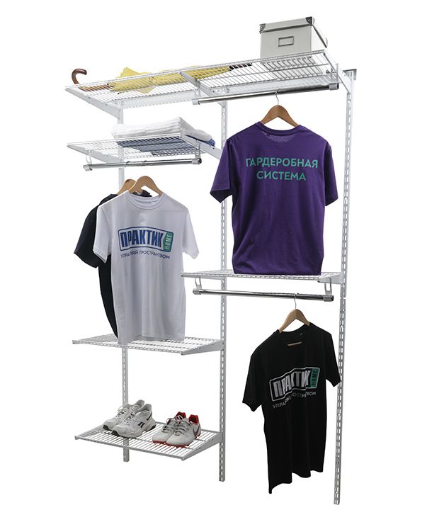 Рельс несущий ПРАКТИК Home GR-65 белый - 2 шт. Стойка ПРАКТИК Home GS-100 белая - 6 шт. Соединитель стоек ПРАКТИК Home GSC белый - 3 шт. Полка сетчатая ПРАКТИК Home GSh 60х40 белая - 6 шт. Кронштейн полки ПРАКТИК Home GBr-40 белый - 11 шт. Кронштейн штанги ПРАКТИК Home GRB белый - 6 шт. Штанга ПРАКТИК Home GR-60 - 3 шт. Соединитель штанг ПРАКТИК Home GRC - 1 шт. Комплект заглушек штанги (2 шт) ПРАКТИК Home GRP - 3 шт.