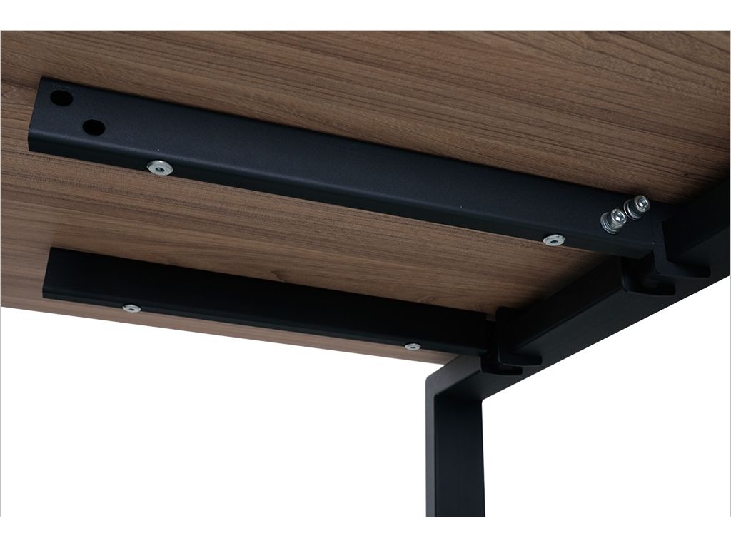 Столешница - ламинированная ДСтП 25 мм, с лазерной ABS кромкой толщиной 2 мм с полимерным функциональным слоем (Германия), которая обеспечивает эффект нулевого шва и улучшает влагостойкость и термостойкость элементов фасада. Опора металлическая - П-образная, из трубы сечением 60*30 мм. Две металлические траверсы. Соединение деталей металлокаркаса при помощи винтов. Порошковое покрытие муар. Опоры со скрытой регулировкой по высоте. Поставляется в разобранном виде.