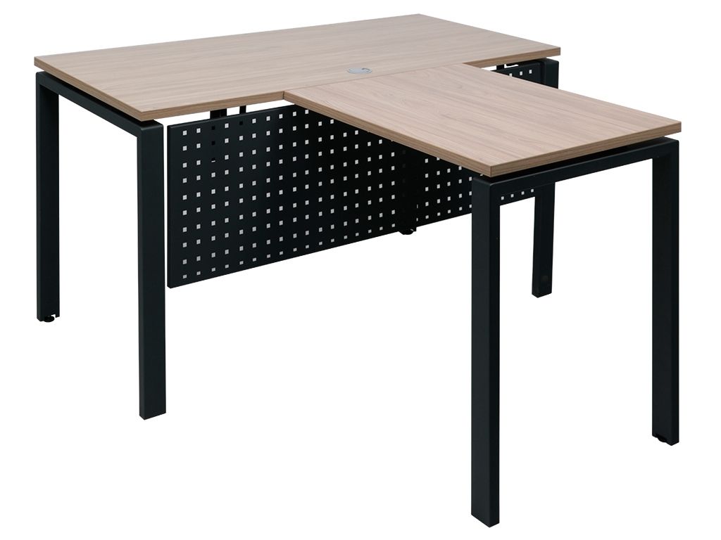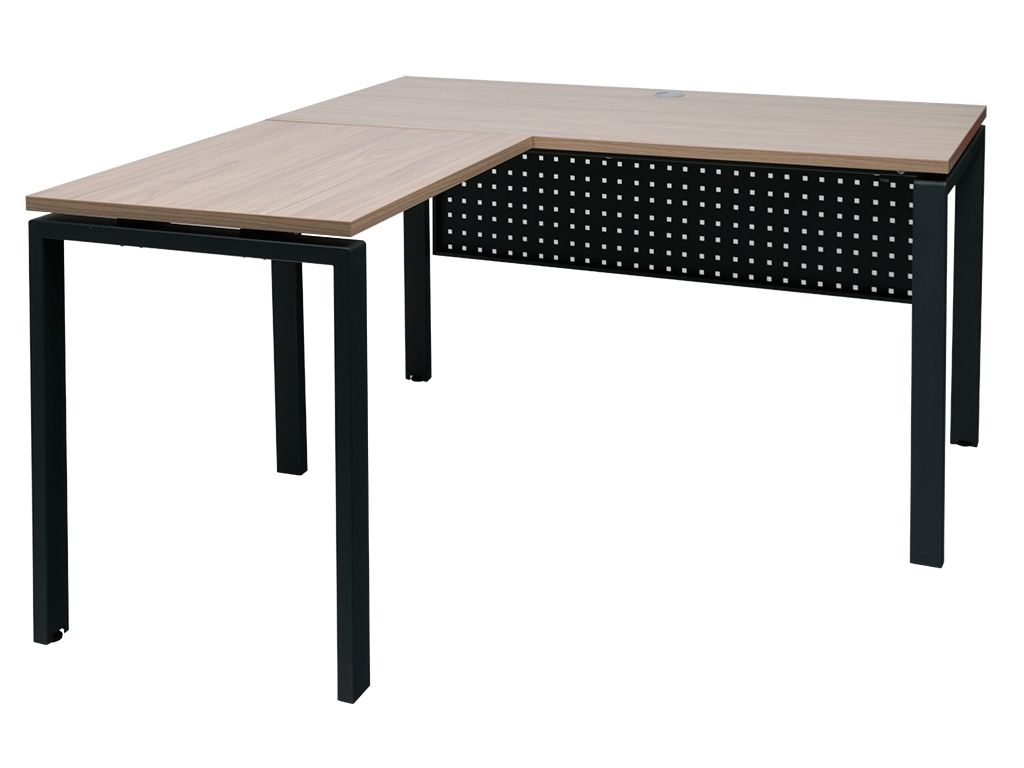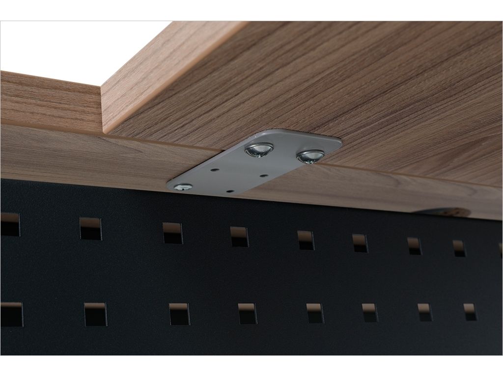Визуально «парящая» столешница с отрывом от опоры брифинг-приставки. Жесткость конструкции обеспечивает уникальная система крепления элементов металлокаркаса. Приставляется к офисным столам серии NP, крепится по месту снизу столешниц при помощи пластин (входят в комплектацию опоры).