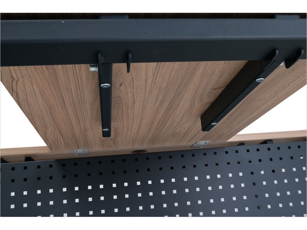 Цвет каркаса: антрацит (RAL 7016 муар). Цвет столешницы: вяз натуральный. Столешница - ламинированная ДСтП 25 мм, с лазерной ABS кромкой толщиной 2 мм с полимерным функциональным слоем (Германия), которая обеспечивает эффект нулевого шва и улучшает влагостойкость и термостойкость элементов фасада. Опора металлическая - П-образная, из трубы сечением 60*30 мм. Две металлические траверсы. Соединение деталей металлокаркаса при помощи винтов. Порошковое покрытие муар. Опоры со скрытой регулировкой по высоте. Поставляется в разобранном виде.