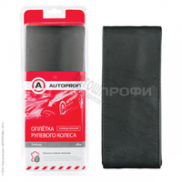 Чехол на руль "AUTOPROFI" AP-265 BK (L) натуральная кожа, ребристая, черная