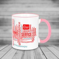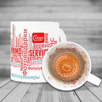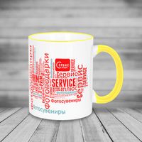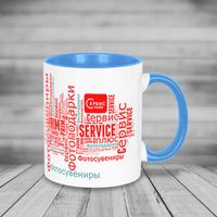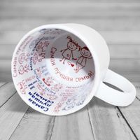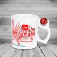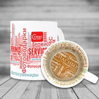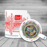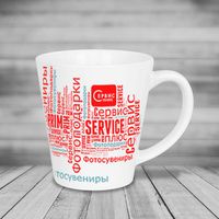 Кружка, зауженный низ, керамика, глянцевая, белая с черными внутренней заливкой и ручкой с ложкой [320мл] (с печатью принта, надписи, фотографии)