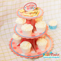Подставка для пирожных трехъярусная День рождения девочки - 1 шт.