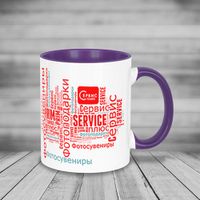 Кружка керамика, глянцевая, белая с темно-сиреневыми внутренней заливкой и ручкой [310мл] (с печатью принта, надписи, фотографии)