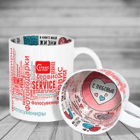 Кружка керамика, глянцевая, белая с внутренним рисунком "С любовью" [300мл] (с печатью принта, надписи, фотографии)
