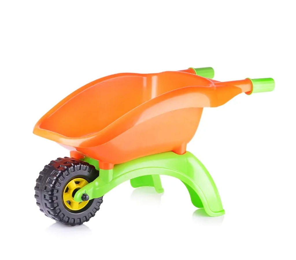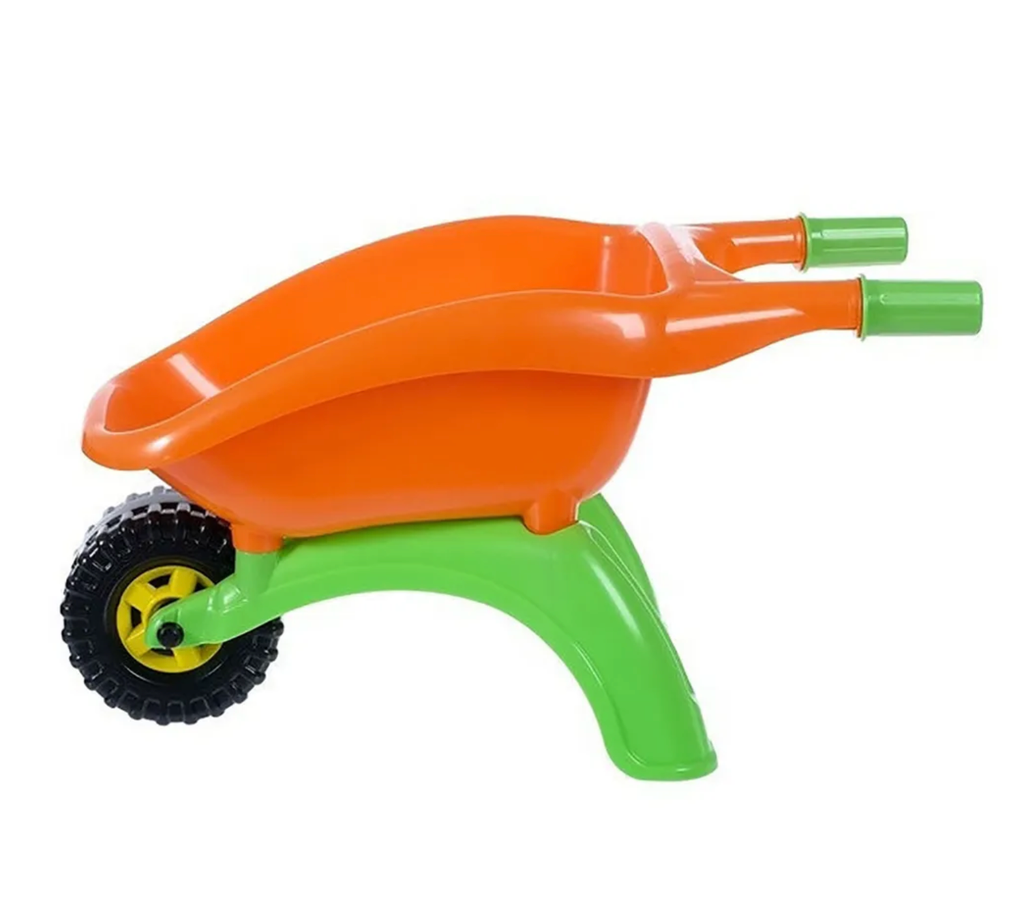 Тачка детская "Садовод" — яркая тачка для игр в песочнице, а также для помощи родителям на даче или в саду. Прочная конструкция оснащена ручками и одним колесом для транспортировки тележки. Вместительный кузов позволит перевозить игрушки, песок, маленькие камешки, воду, листья и траву. С тачкой можно играть дома и на улице.