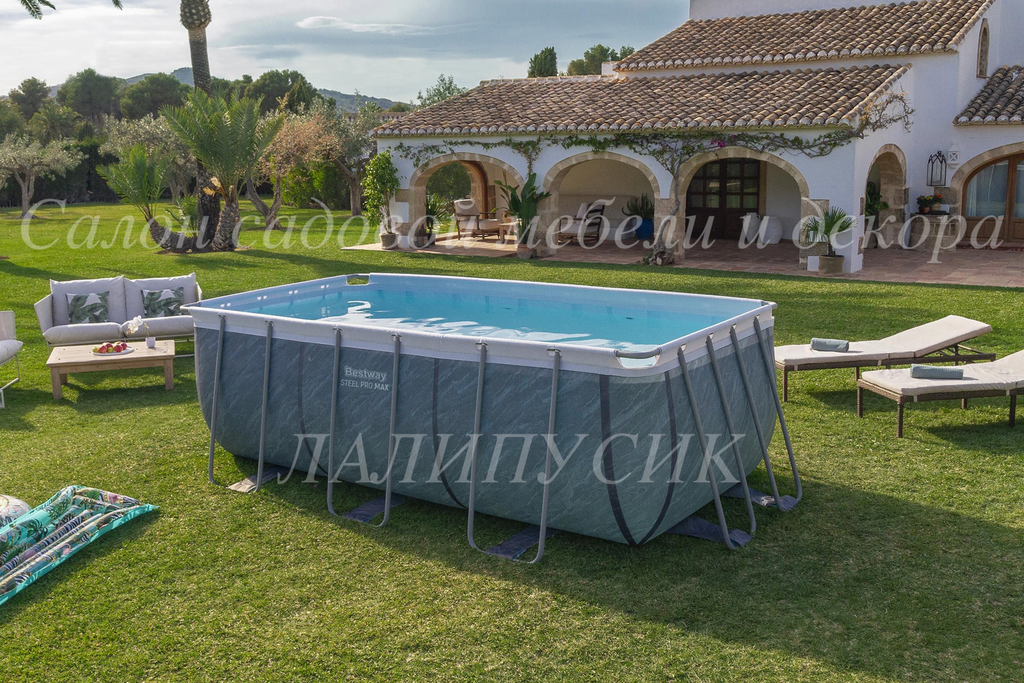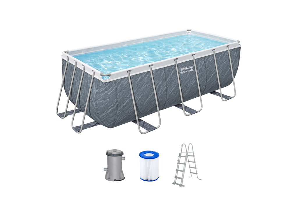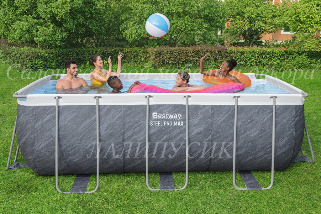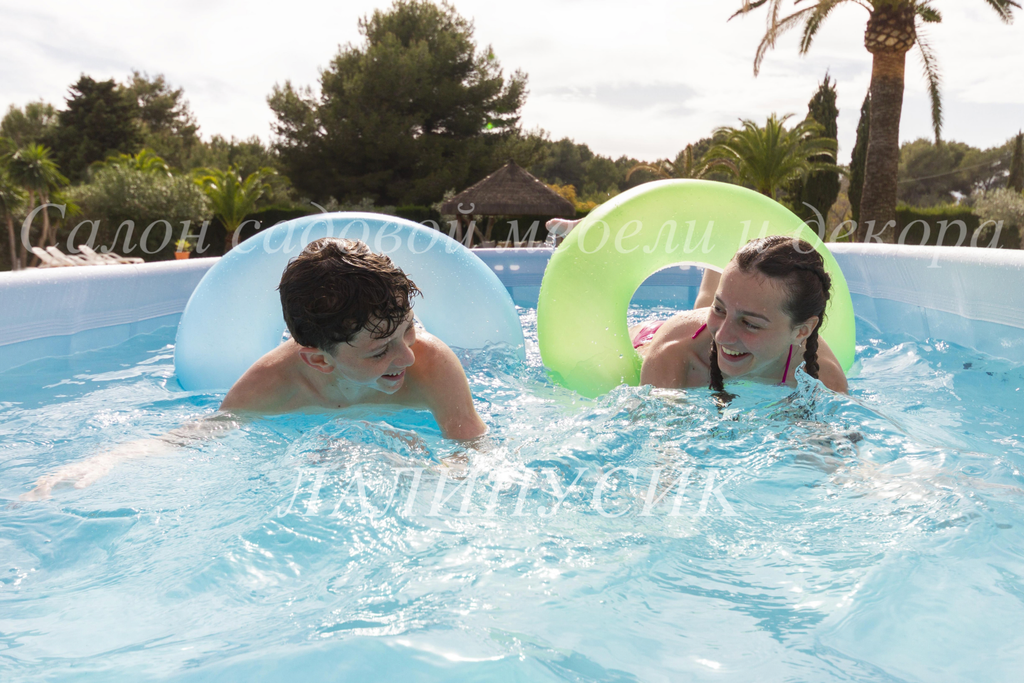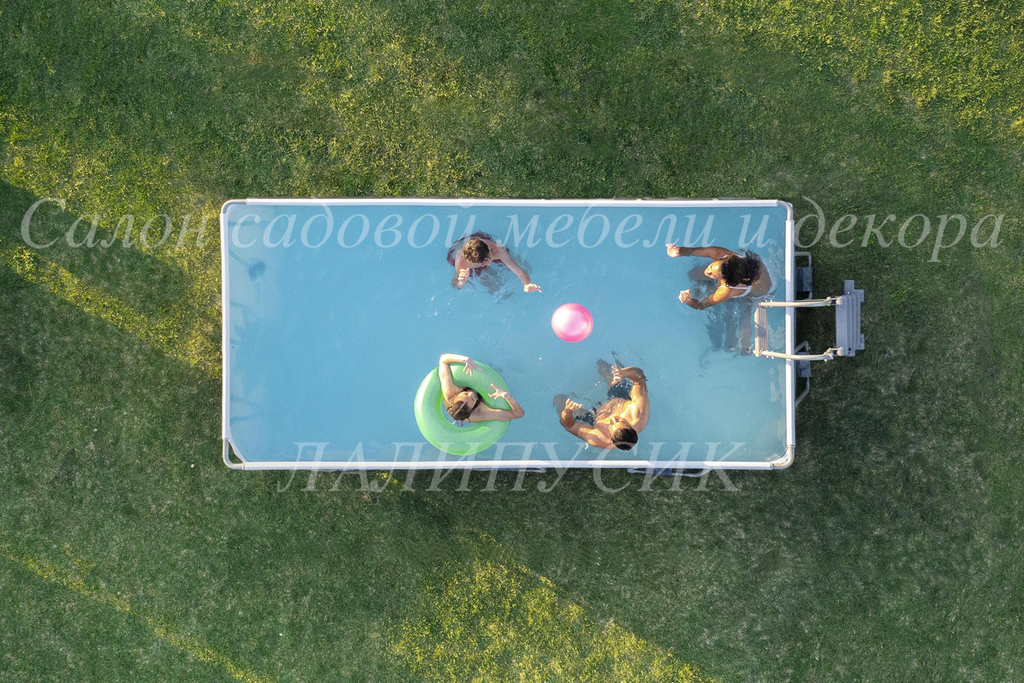 Каркас бассейна выполнен из нержавеющей стали, надежно фиксирует чашу и способен выдерживать максимальные нагрузки. Чаша из трех слоев прочного материала устойчива к ударам, растягиванию и воздействию солнечных лучей. Бассейн оснащен фильтр-насосом, который очищает воду от всевозможных загрязнений. В комплект входит металлическая лестница.