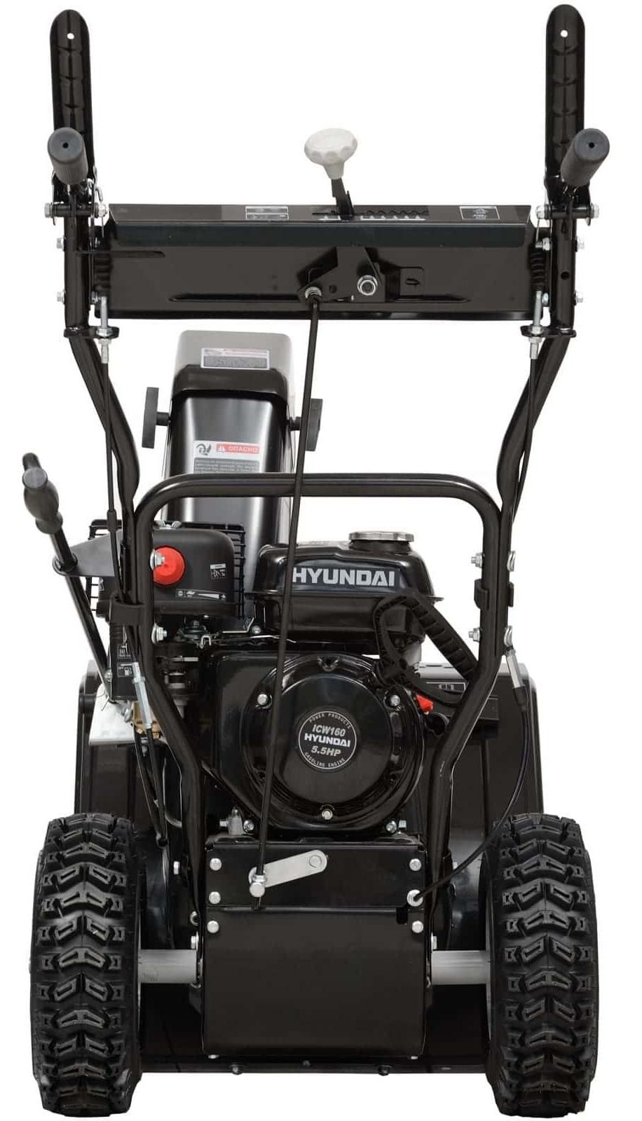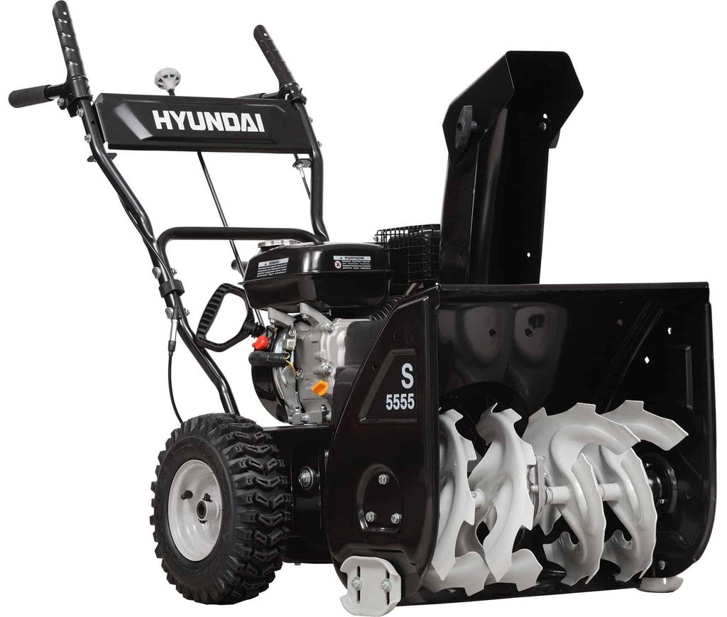 Снегоуборщик бензиновый Hyundai S 5555 оборудован мощным двигателем мощностью объемом 5.5 л.с. с воздушным охлаждением. Агрегат используется для очистки от снега небольших по площади территорий - автостоянок, парковок, подъездных дорожек. Металлический шнек имеет специальные зубчики для переработки снежной корки или наледи. Направление и дальность выброса снега регулируются.