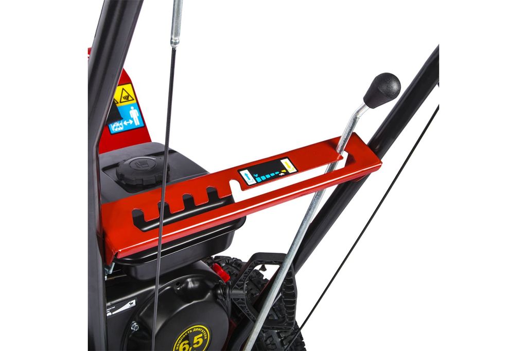 - Ручной стартер. Используется для запуска двигателя и находится в удобном и доступном месте на задней части снегоуборщика в виде рычага.