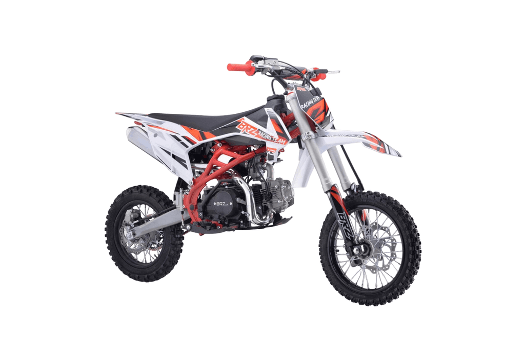 Питбайк BRZ X3 позиционируется, как тренировочный снаряд для эндуро и кросса. X3 Подойдет для выступления в соревнованиях по питбайку в классе "дети до 14 лет". Также он будет по душе райдерам с ростом от 140 до 170 см для веселых покатух по пересеченной местности. Он избавлен от всего лишнего, простой и надежный, как автомат Калашникова. Надежность обеспечивает идеальная связка двигателя YX 125 со стратером на механике с карбюратором NIBBI.