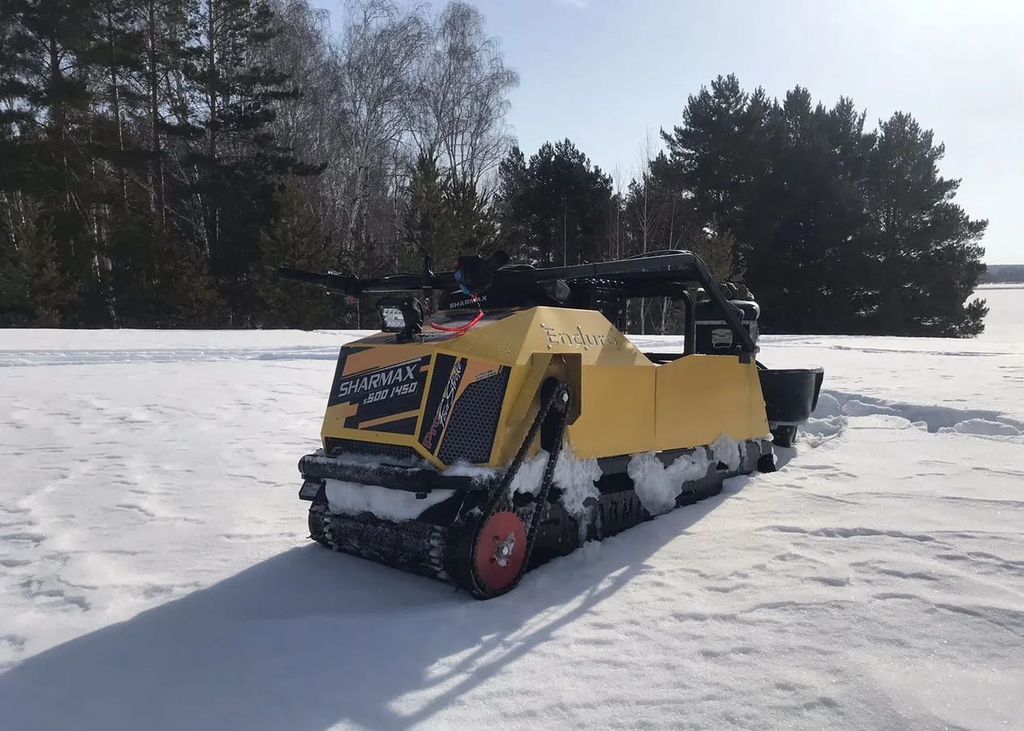 Sharmax S500 Enduro. Букс нормальный, тянет хорошо. Катался зимой на рыбалку, сани с грузом таскал без проблем. Двигатель живой, заводится легко. Косметика есть, но техника рабочая. Отдаю, потому что уже второй год почти не пользуюсь.