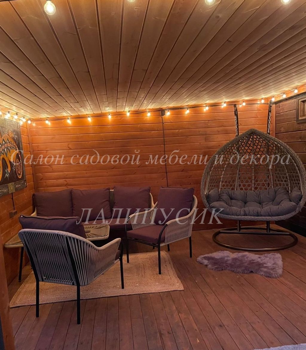 Оплетено кресло ручным способом искусственным ротангом, который не подвержен воздействию погодных условий, не выгорает на солнце и спокойно реагирует на влагу. Такое кресло вы можете оставлять на улице и даже спустя время оно не потеряет своего первоначального вида.