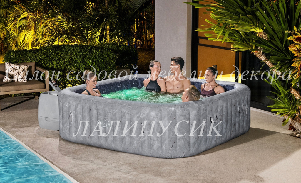 Спа-бассейн с пузырьковым массажем – это идеальный способ расслабиться! Пузырьки воздуха поступают прямо из центра дна и боковых стенок спа-бассейна, тем самым обеспечивая одновременный массаж ступней и спины. Кроме того, системой можно управлять прямо с Вашего смартфона! Расслабьтесь во время расслабляющего спа-массажа! Форсунки HydroJet создают успокаивающую струю воды с боковых стенок в сочетании с успокаивающим потоком пузырьков воздуха, выходящих из нижней части гидромассажной ванны.