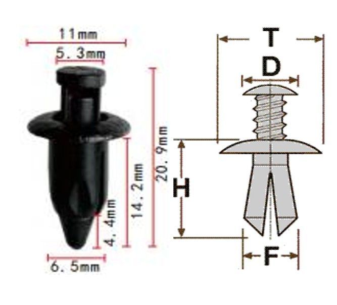 Клипса T-0006 (KJ-1050) автомобильная с резьбовым штырьком, 25шт.