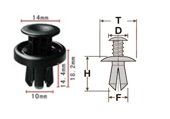 Клипса T-0018 автомобильная с резьбовым штырьком, 25шт.