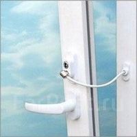 Комплектующие для окон и дверей. Оконная фурнитура. Ограничитель с тросиком открывания окон и дверей. Детский замок