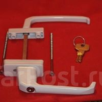 Комплектующие для окон и дверей. Оконная фурнитура. Ручка двухсторонняя балконная с ключом и кнопкой