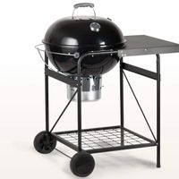 Угольный гриль, большой стационарный гриль LOCKER с удобной боковой столешницей, открывалкой для бутылок и регулируемой по высоте угольной решеткой. Благодаря наличию полочек можно удобно расположить вспомогательные элементы и продукты для приготовления еды. Данная модель имеет два колеса для передвижения конструкции. На крышке есть термостат, который помогает контролировать температуру приготовления блюда.