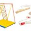 - Комплектуется оптимальным набором аксессуаров: мат, сетка, горка, трапеция, диск-качели, канат 1 м.