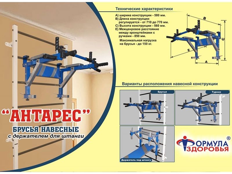 Комплектация: турник, брусья, держатель для штанги, съемная мягкая опора спины.