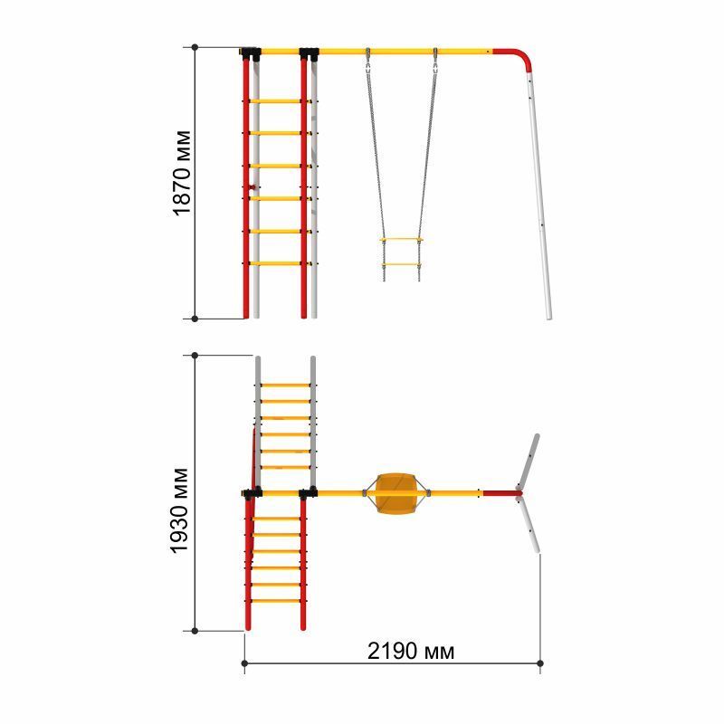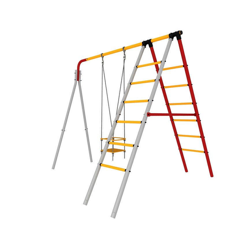 В комплекте: 2 лестницы гимнастические, перекладина, качели.