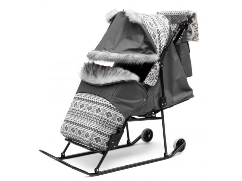 Tкань "Dewspo", 3 положения спинки, спинка жесткая, 2 больших колеса, большой складывающийся козырек, накидка на ноги, ремень безопасности, жесткая спинка, Муфта (М), сумка для мамы, отделка мехом по козырьку, искусственный мех под волка, полозья 30 мм.6 700 ₽Под заказВладивосток — бесплатно -
