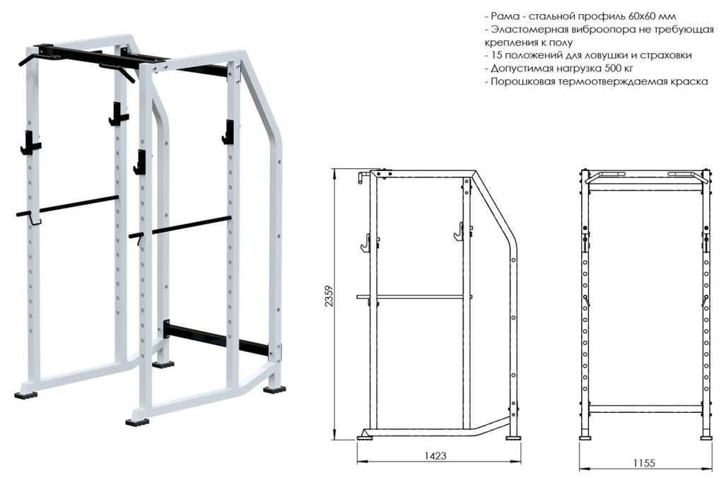 - Благодаря страховкам силовая рама прекрасно подходит для безопасных приседаний и жимов как со скамьей, так и самостоятельно.