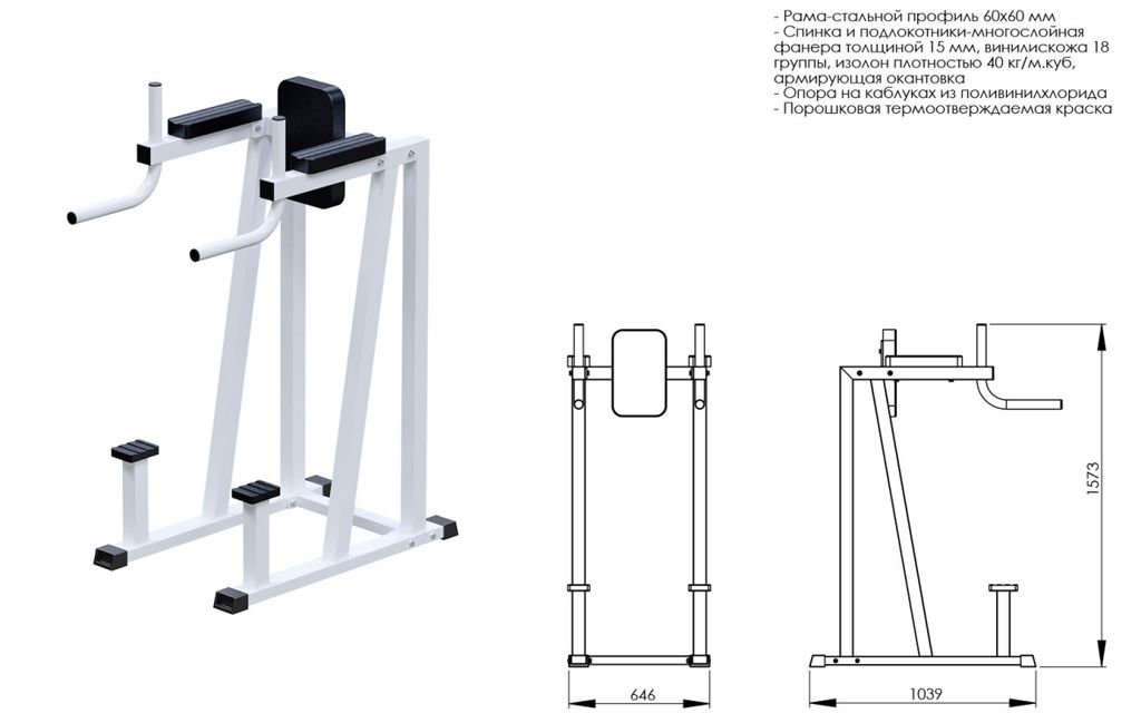 • Конструкция тренажера изготовлена из стального профиля 60х60мм, в изделии используется профиль толщиной 2мм;