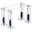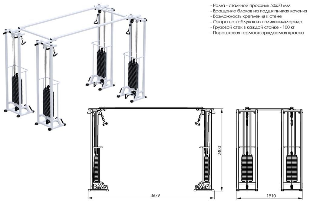 - Грузоблочный стек тренажера состоит из металлических обрезиненных плит весом по 5кг, и хромированных направляющих. Изменение нагрузки происходит при помощи металлической иглы(фиксатора). Для приведения в движение грузов используется трос 5 мм в пвх оплетке с усилием на разрыв 500 кг с максимальной нагрузкой – 800кг.