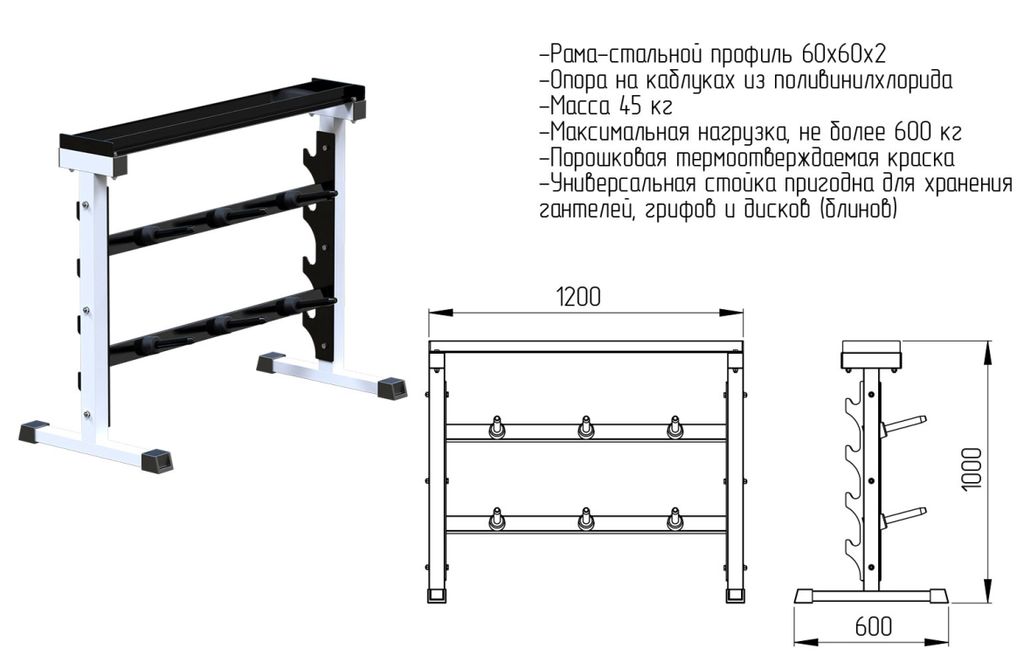 • Стойка для гантелей, дисков и грифов.