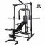 В комплекте идет универсальная силовая скамья с дополнительными опциями: партой для бицепса и жим ногами. Сиденье и спинка скамьи регулируются по углу наклона. Сиденье 3 положения, спинка 7. Скамья, валики для ног и парта имеют износостойкую обивку из кожзама. В качестве нагрузки на жим ногами используются диски с посадочным Ø31 и Ø51 мм (переходник в комплекте). Нагрузка на скамью до 400 кг.