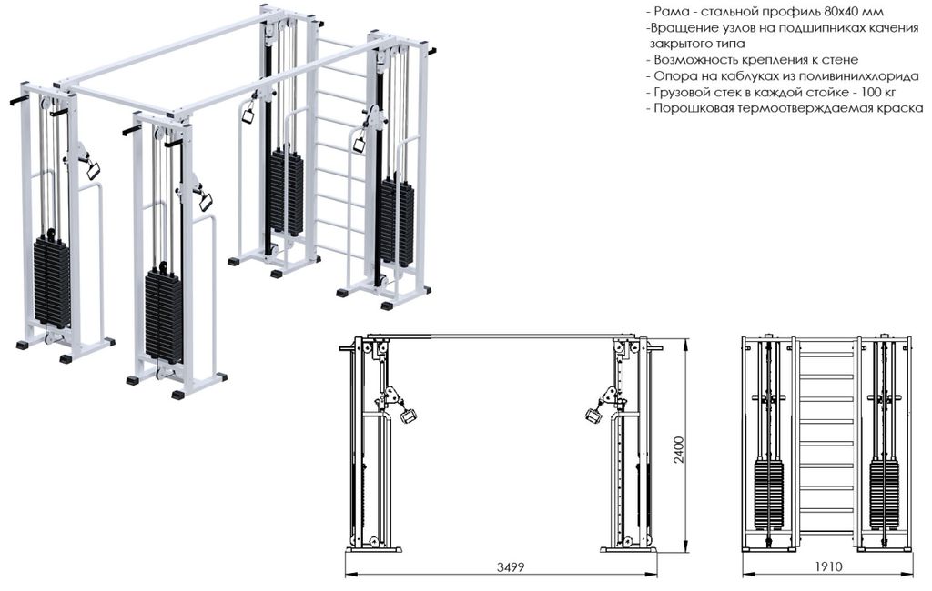 • Конструкция тренажера изготовлена из стального профиля 80х40мм, в изделии используется профиль толщиной 2мм;