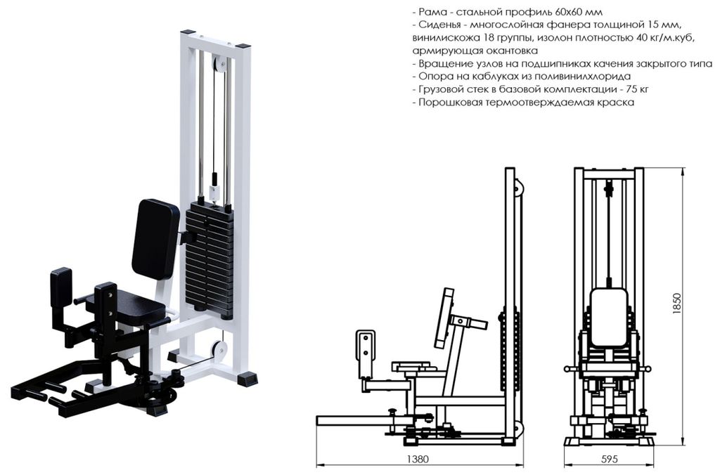 • Конструкция тренажера изготовлена из стального профиля 60х60мм, 80х40мм;