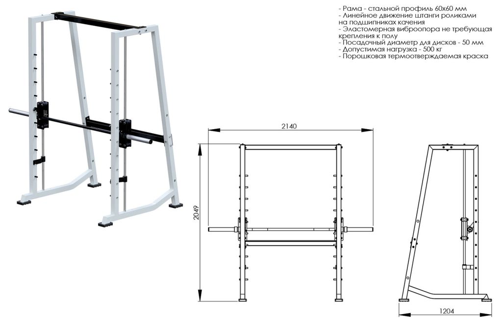 - Благодаря стабильному положению штанги сохраняется траектория движения, что позволяет заниматься на тренажере без страховки.