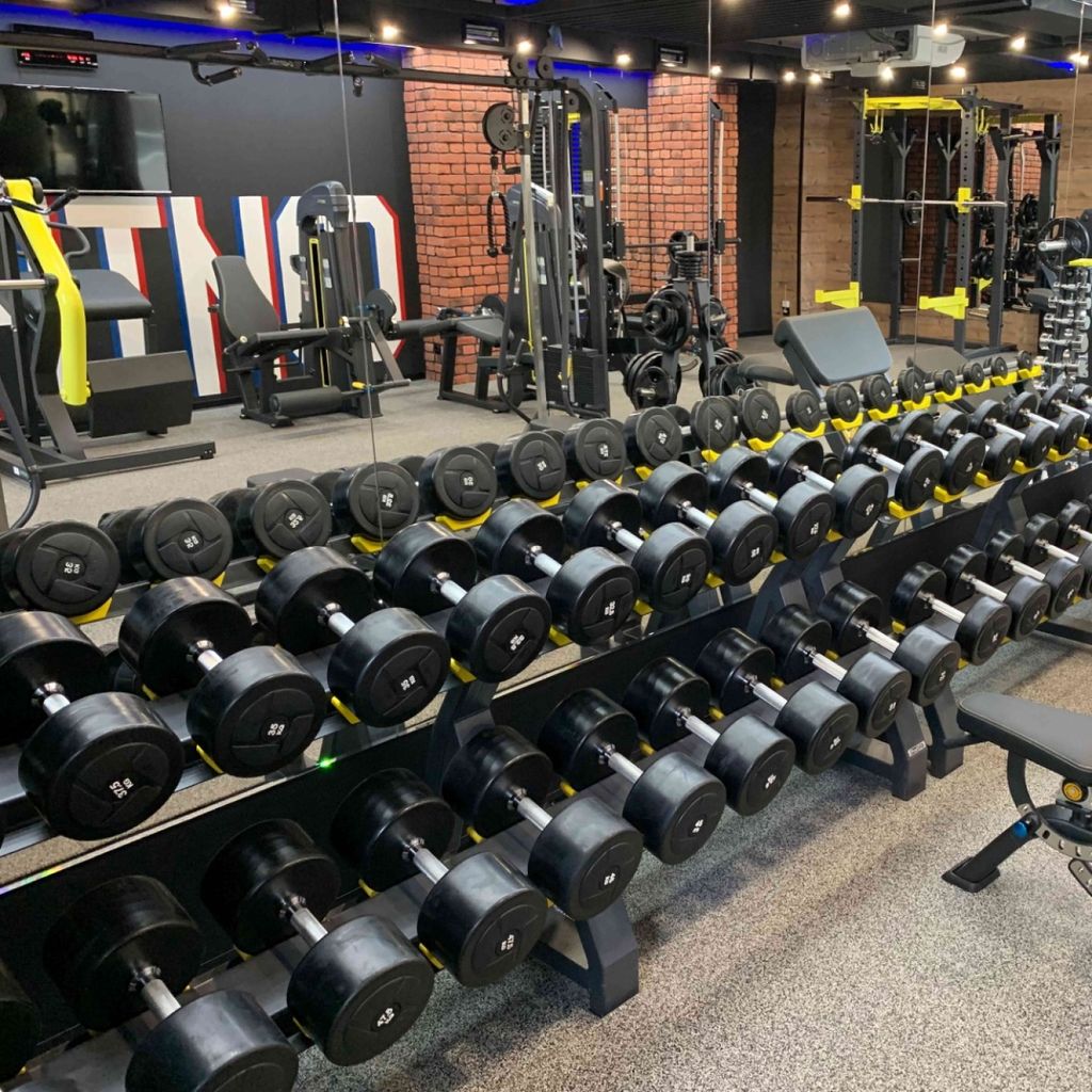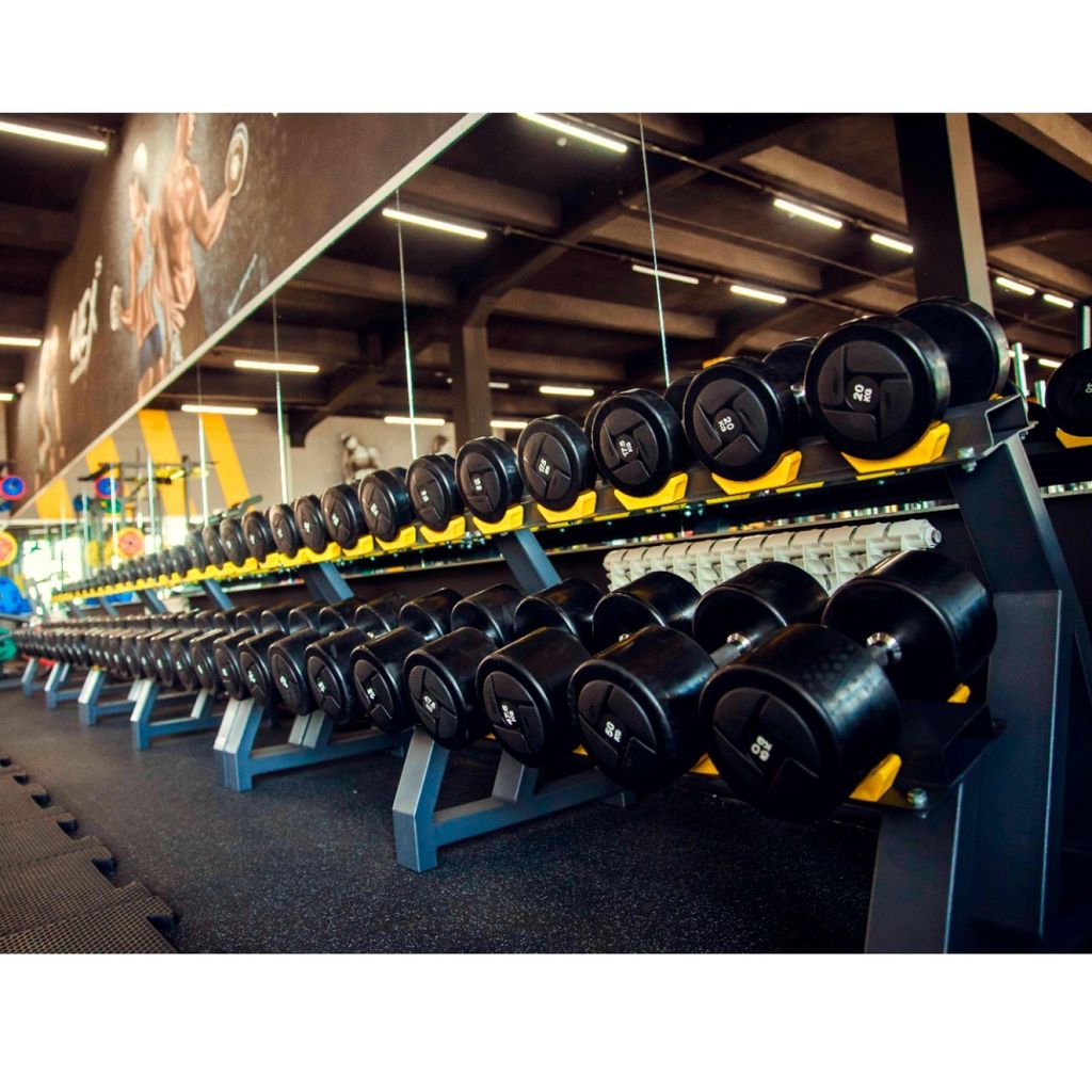 • На стойке можно разместить десять пар гантелей с длиной рукояти от 120 до 160 мм, общим весом до 720 кг.