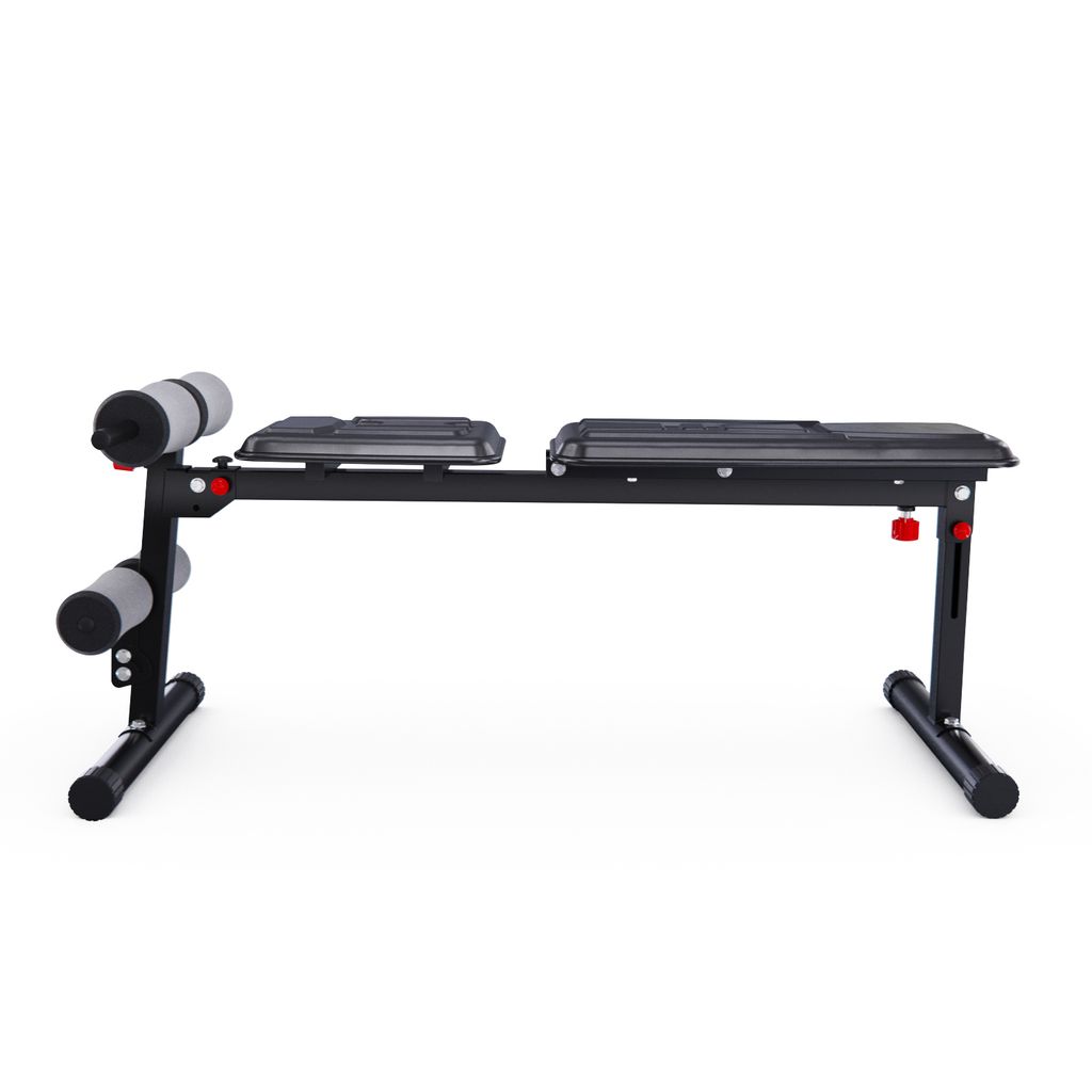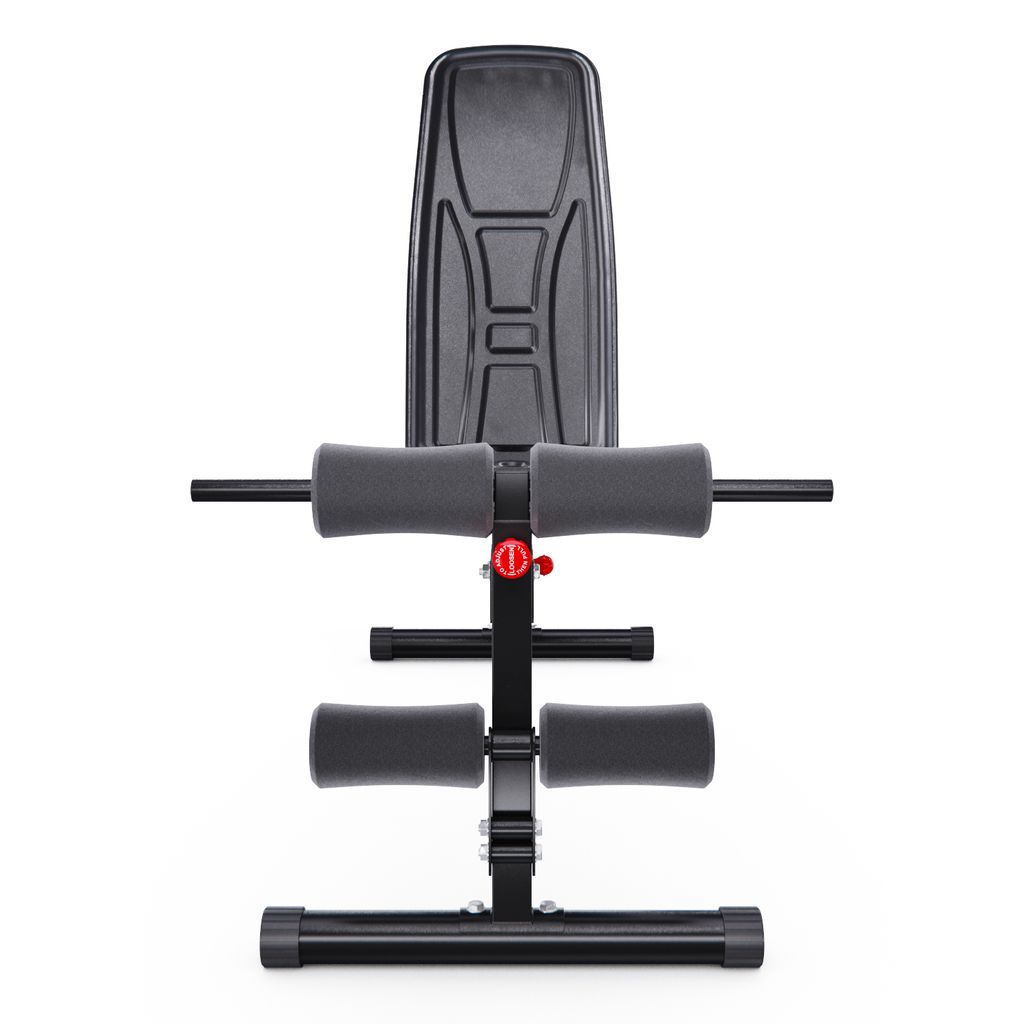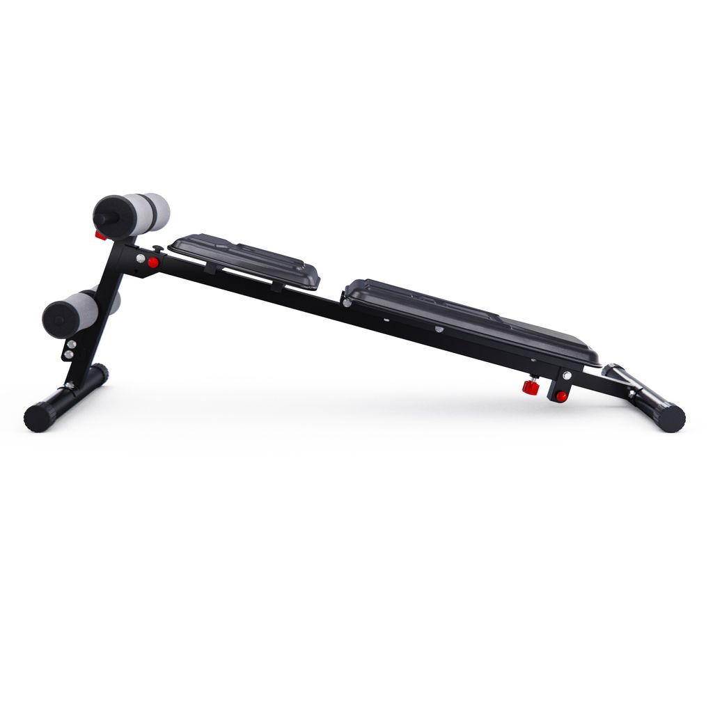 Валики из вспененного материала регулируются на 8 уровней по высоте и обеспечивают надёжную фиксацию во время тренировки. Большие ножки скамьи для фитнеса прорезинены по всей площади, чтобы защитить пол, а противоскользящая конструкция всегда обеспечивает устойчивое положение. Скамья также имеет складную и компактную конструкцию, чтобы сэкономить место в доме.
