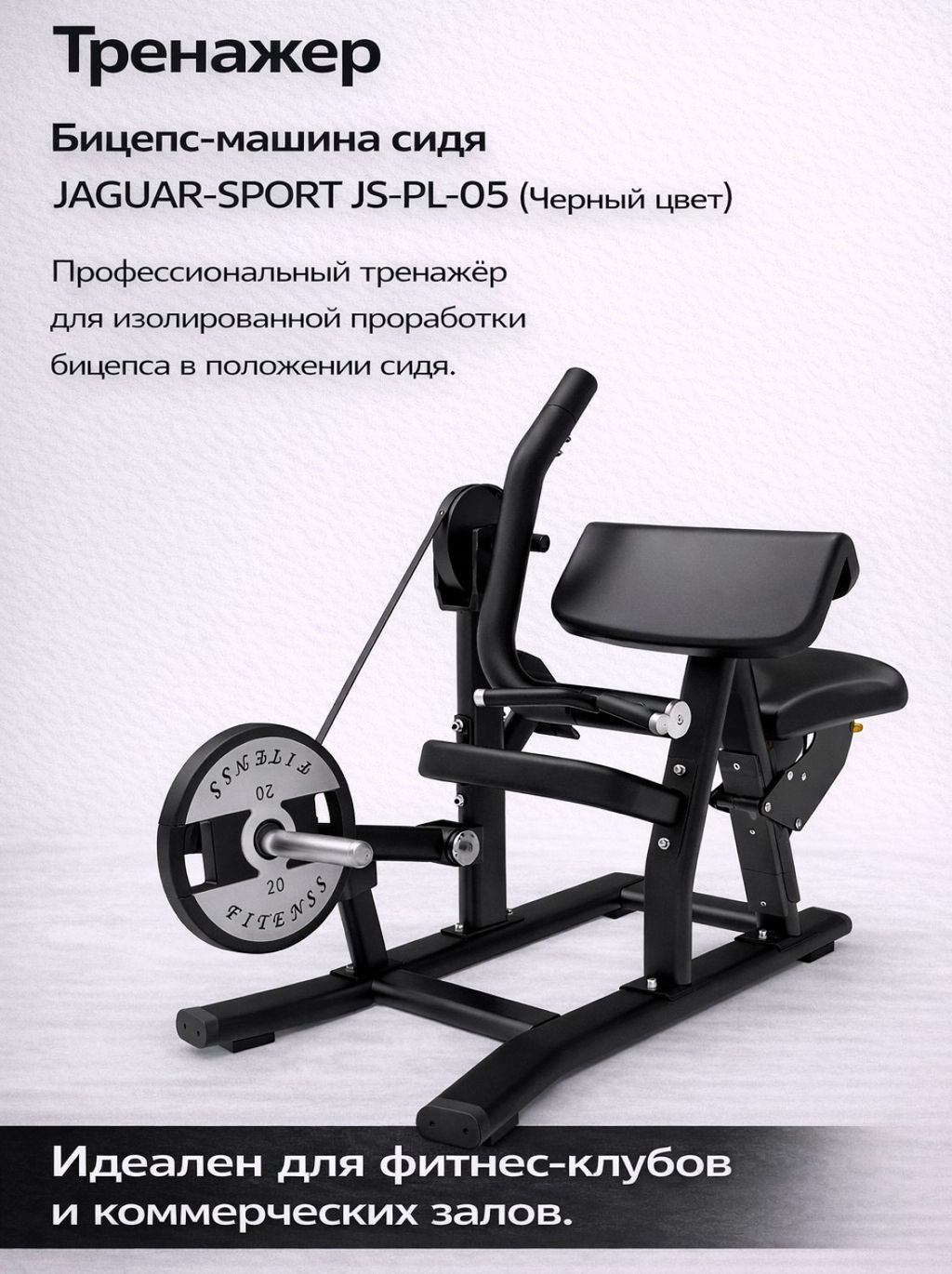 Бицепс-машина сидя JAGUAR-SPORT JS-PL-05 - профессиональный тренажёр с нагрузкой от свободных весов для изолированной проработки бицепса в положении сидя, идеален для фитнес-клубов и коммерческих залов.