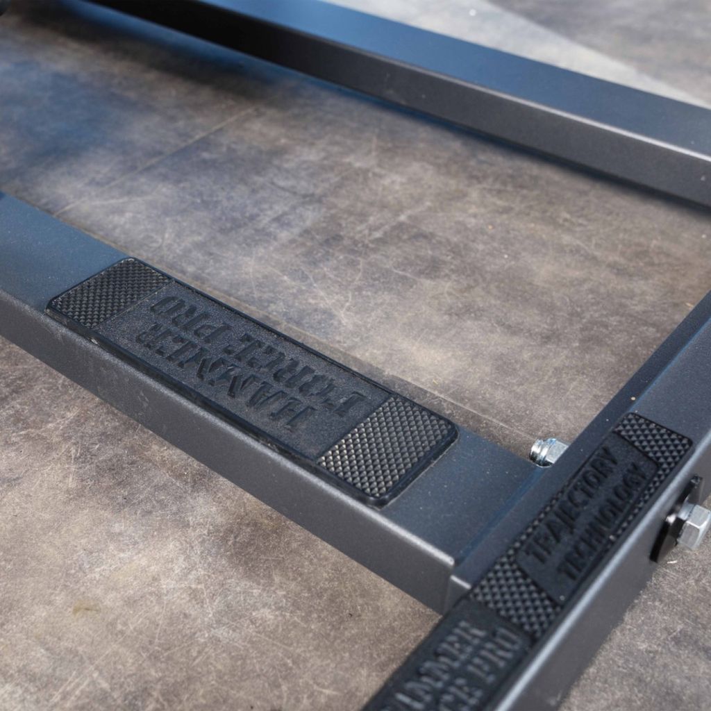 • На раме закреплены рубчатые коврики для защиты тренажера от износа и спортсмена от скольжения при выполнении упражнения.