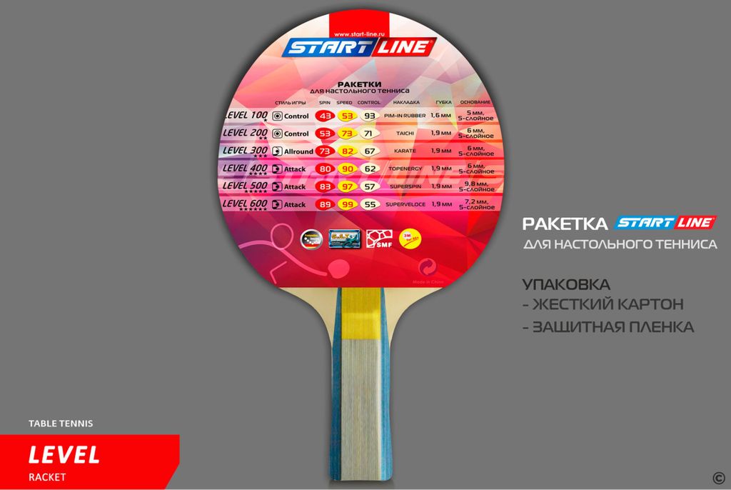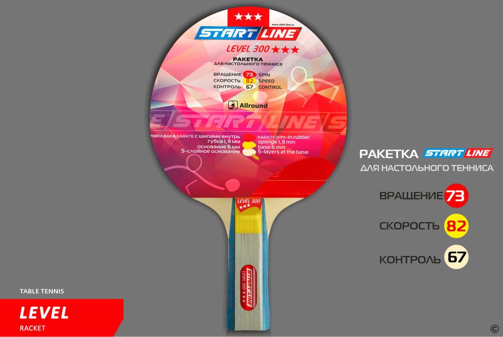 Ракетка для настольного тенниса Level 300 соответствует высокому современному стандарту качества, имеет обновленный дизайн, а также улучшенные технологические и игровые характеристики.