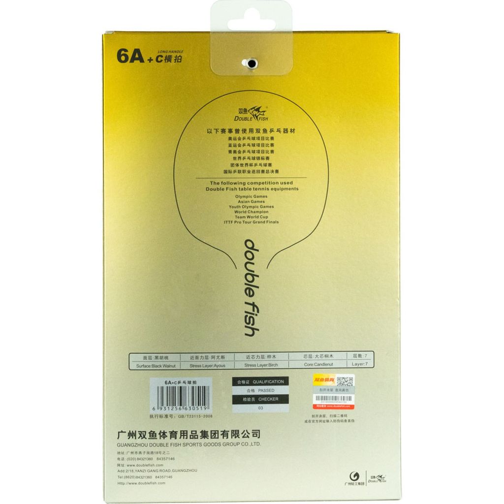 Ракетка DOUBLE FISH 6A+C, предназначена для продвинутых игроков, а так же профессионалов с техникой быстрой, атакующей игры. Одобрена Международной федерацией настольного тенниса (ITTF). Сочетание семислойного основания чистой древесины и накладок DOUBLE FISH VOLANT с губкой 2,1 мм создают ракетку с превосходными скоростными характеристиками, хорошими вращением и контролем, достаточными для выполнения различных атакующих ударов. В набор входят 2 мяча V40+мм.