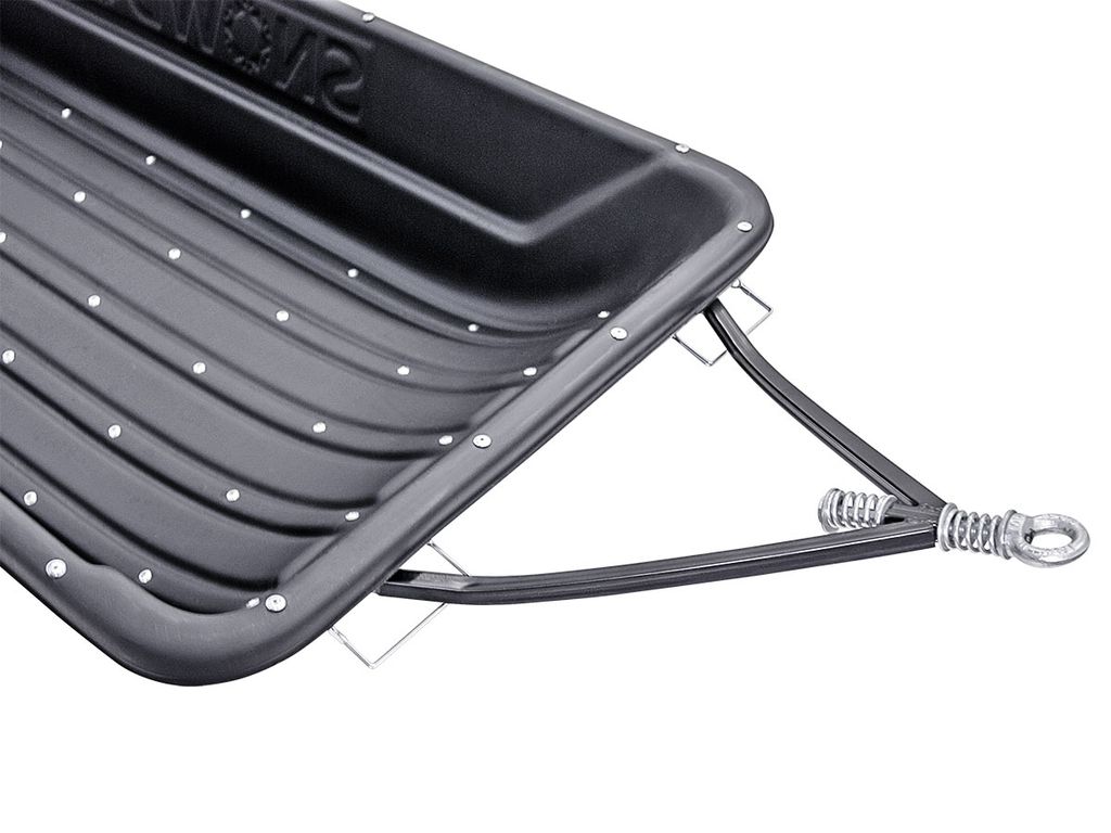 На все сани установлены дополнительные полозья высотой 13 мм, защищающие днище от истирания, а также играющие роль направляющих для более устойчивого движения в колее мотобуксировщика. Конструкция крепления полозьев к днищу саней выполнена без сквозных отверстий, что исключает протекание, и лучше сохраняет груз.