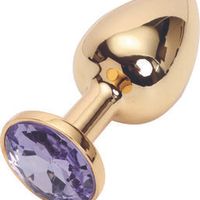 Анальная пробка золото МАЛАЯ с розовым кристаллом 7 см х 2,7 см